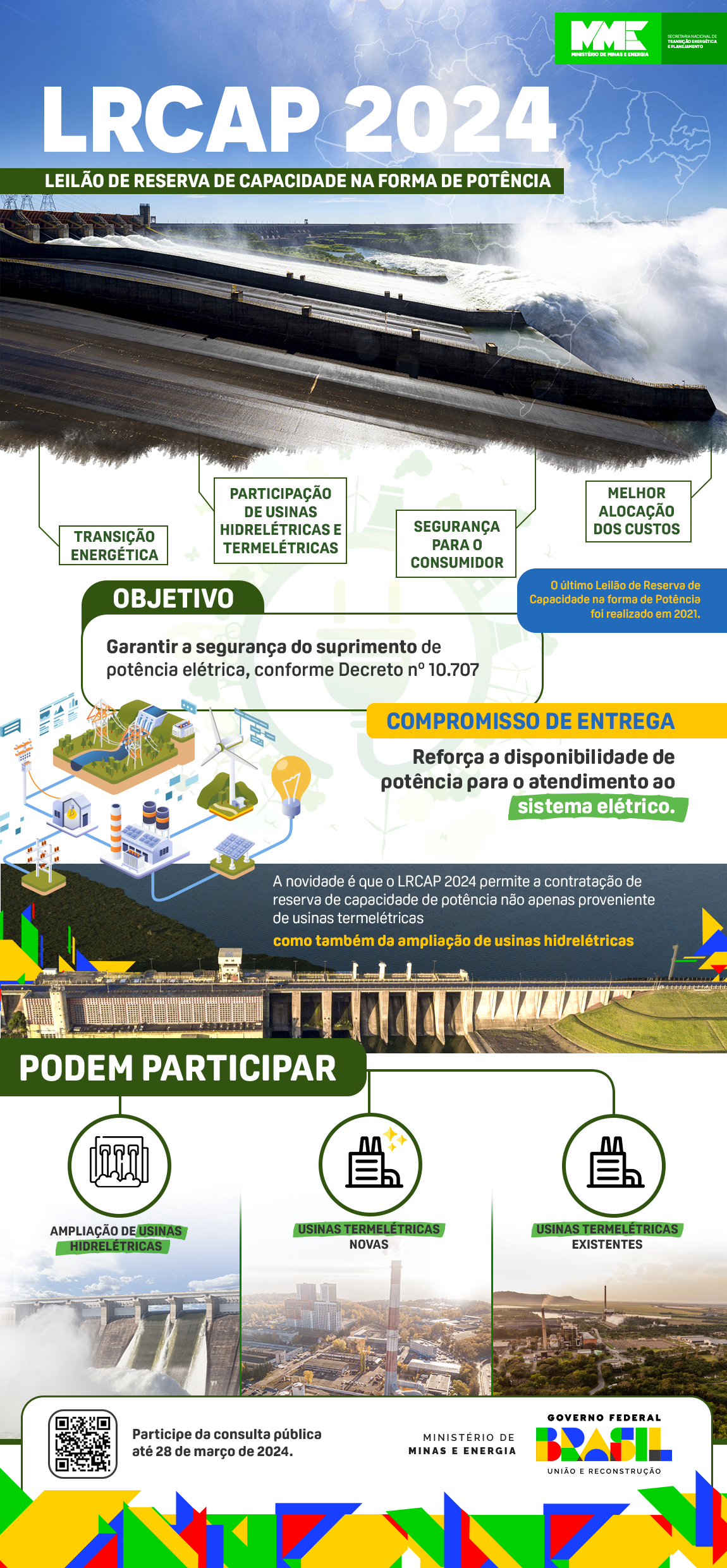 Com isso, o LRCAP 2024 fortalece a transição energética da matriz elétrica nacional ao propor uma contratação mais ajustada aos requisitos do sistema, garantindo a segurança do fornecimento de energia elétrica frente às profundas transformações do sistema elétrico.